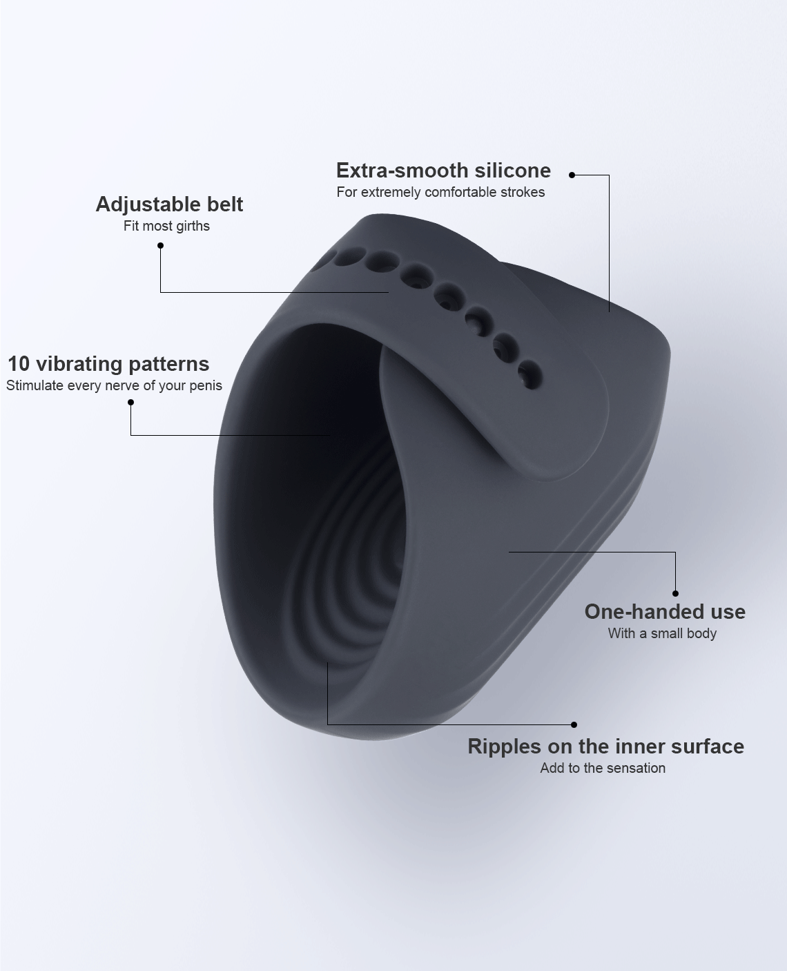 Grab this penis stimulator in your palm, ready to tease and treat your penis with exciting vibrations, and get a more robust, more prolonged erection. Gavi has a petite body yet strong power to massage your sensitive shaft with comfort and thrills. In particular, it introduces a better wrapping experience with an adjustable belt that fits your size for the tightness you prefer. This compact tool works as a stamina trainer to stimulate your penis and glans to reduce sensitivity for prolonged endurance so as to improve your durability in sex life. Power through 10 vibrating patterns, start the vibe, get in the mood, and let the pleasure cruise along your shaft. Savor the moment you may have longed for too long.